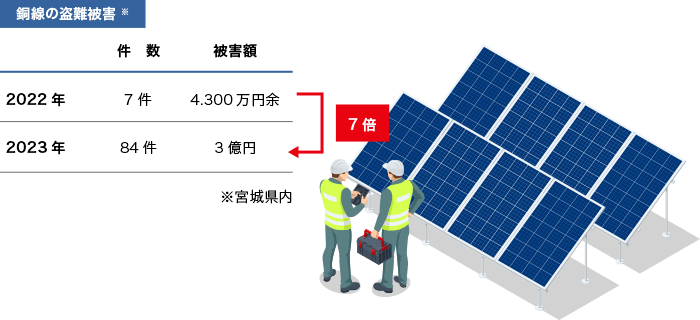 発電設備には大量の銅線ケーブルが使われており、こうした特性から、組織的な窃盗グループにとって格好の標的となっているのです。