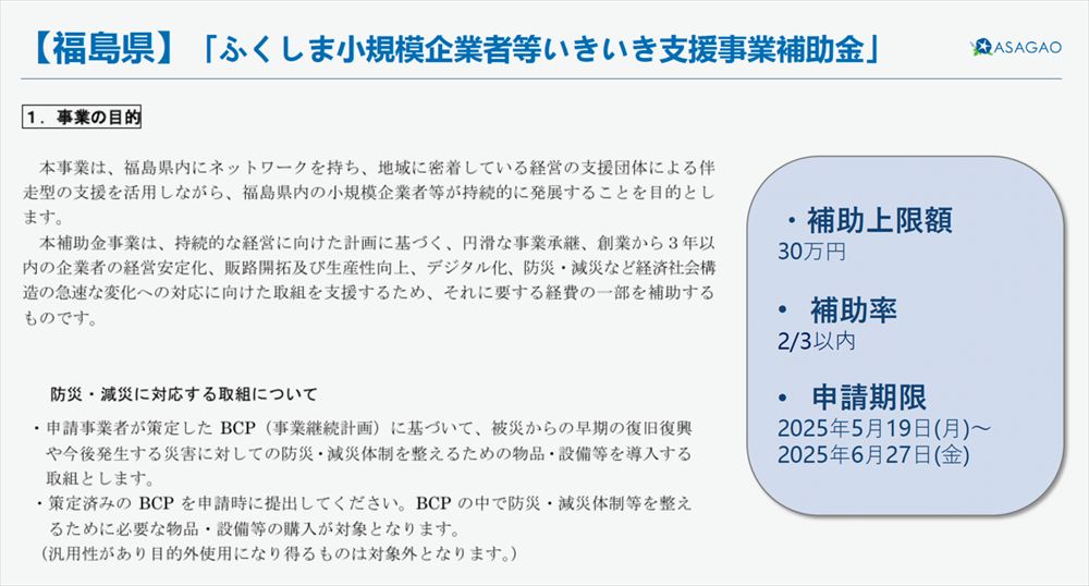 各自治体のBCP対策向け補助金事業制度も活用ご検討ください。